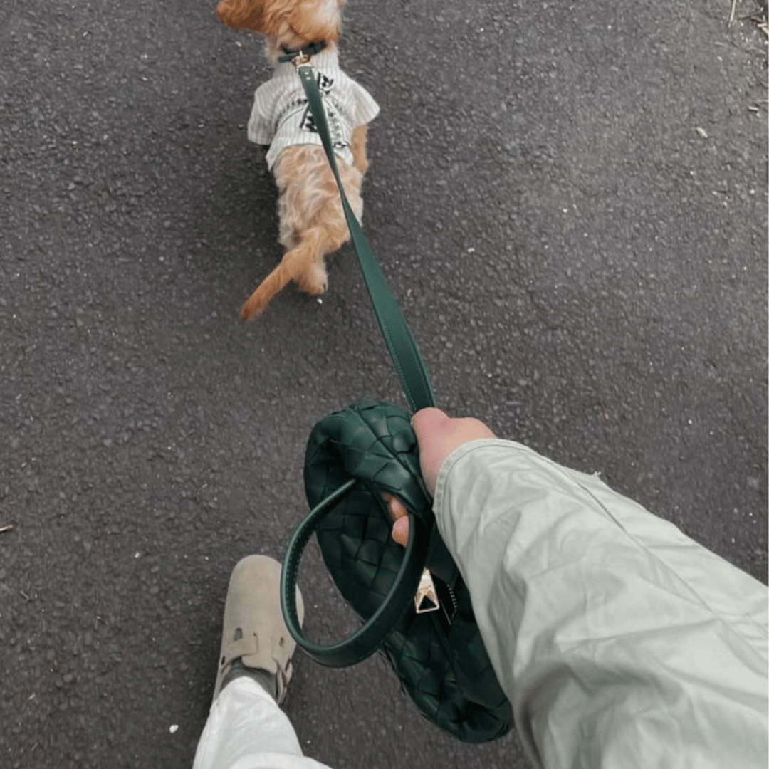 The Bottle Green vegan leather lead is beautifully soft & effortlessly stylish.