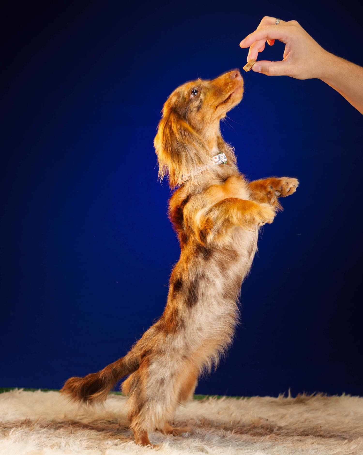 Teckel poil long · 4,2 kg · Gabarit mini mais regard affûté